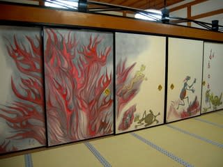 この襖絵は「原爆の図」で有名な丸木位里さん俊さん夫妻の合作で、