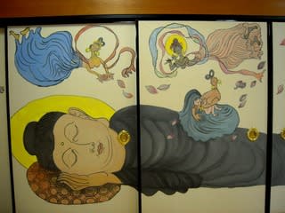 可愛いお顔の涅槃像と飛天