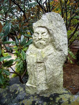 庭の石像。この顔大好き。作者は分からなかったが、ここで個展をされた方の作品だと思う