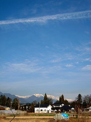 4日の空は「天高く晩秋?の空」 遠くの雪山は爺ケ岳と鹿島槍