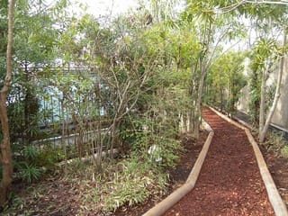 屋上の遊歩道にはチップが敷かれ歩きやすい