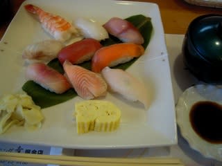 にぎり9貫と出し巻き卵小1個。魚は新鮮、ガリもなかなか美味しい。