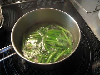鍋にごま油をやや多い目に注ぎ軸部分から炒める。