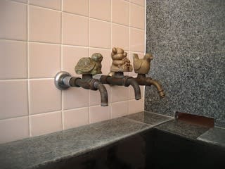 亀と鳥のカランで各自で温度調整が出来ます。