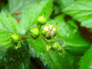 昨夜からの雨で、ブラックべリーの蕾が膨らみました