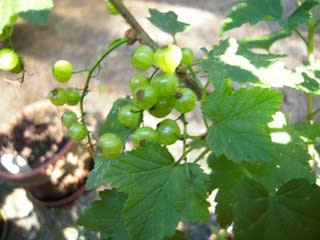 庭のフサスグリの実。赤くなるのを待っている。完熟すれば食べます