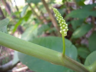 ひそやかに花序が。花は美しいが、実はちょっとグロテスク
