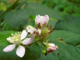 今年のピカイチはブラックベリー。しょぼいですが花が咲いてきましたよー