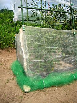昨年のとうもろこしのカラスよけに使った硬めのネットがある。