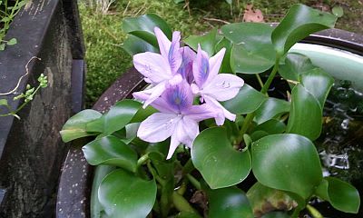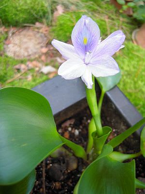 11日の朝、土鉢のホテイアオイに花が咲いているのを発見!