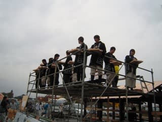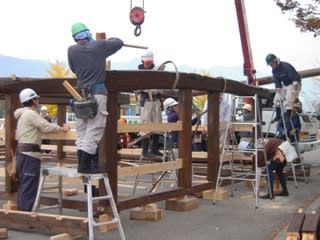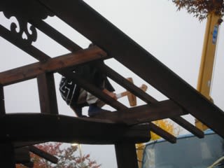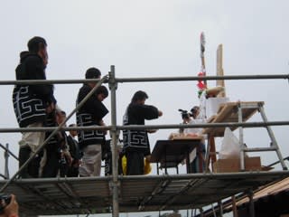 早朝から、本棟作りの「建前」の準備がなされ、午後4時から「上棟式」のセレモニー。