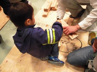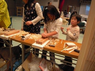子ども用の椅子を作る木工教室は大にぎわいで、1脚分ずつ材料が整えられ山積が夕方にはぺっしゃんこ。