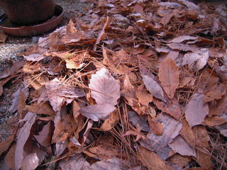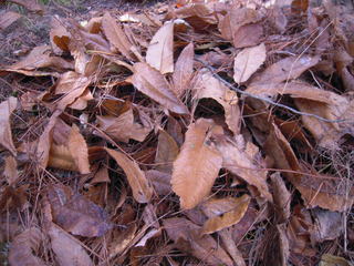 庭周辺にミズナラやクヌギの落葉が、どっさりある。