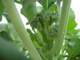 ブロッコリー。てっぺんに実が出来たが、まだまだもう少し大きくなるまで待とう。適期収穫