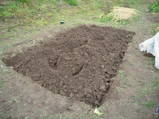 トマト畝の跡をやや拡張して、冬越しの準備。ただひっくり返しただけだけど・・・