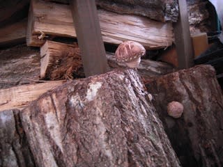 薪小屋にきのこ