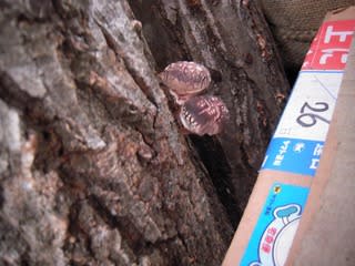 秋に収穫したシイタケのほだ木