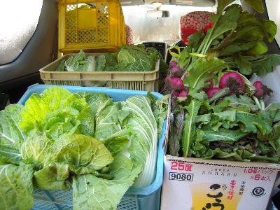 オーナーから野菜(白菜、赤カブ、かた大根)の提供をうけ、福島県南相馬市鹿島区の仮設住宅の方々にお送りできた。
