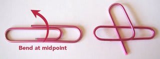 カラーの大きめゼムクリップが良いらしい。こんな感じにまげて作るのだ