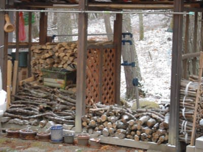見事に薪が無くなった先日の朝、うっすらと雪がかかっていた