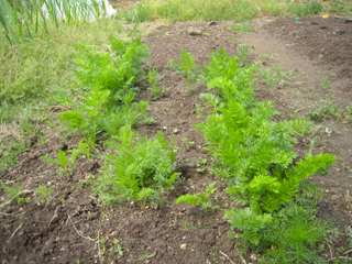 冬を越えたニンジン。うんともすんとも育たなかったのに、今になって背伸びしながら大あくび。