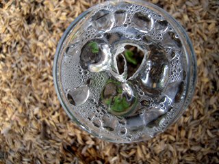 豆の種は鳥の好物。対策に半透明のプラコップの底に穴をあけてみた。やや小さすぎたらしく窮屈そうだが芽を出している。