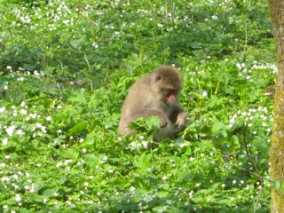 ロッチ近くで、猿が茎の長い植物を引き抜き茎をかじっていた。