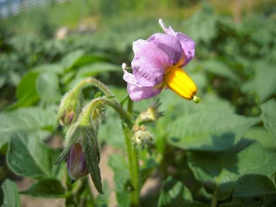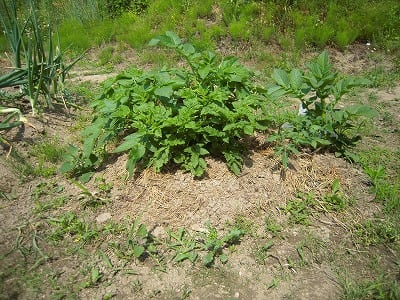積み上げた雑草の山にも、ジャガイモが繁殖。
