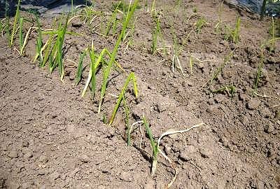 種から育てたネギを定植したが、どうもさえない。肥料を与えた記憶がないな~