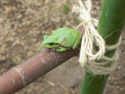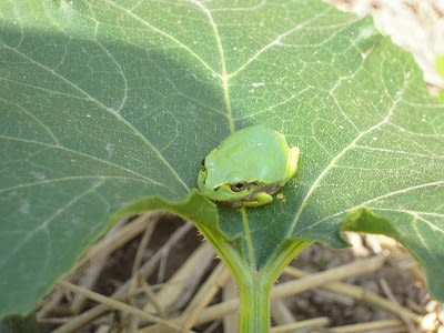 そちらの畑の番人はアマガエルですね。我が家ではトノサマです。目の前に虫を置いてやると食べる・・・ほんと、トノサマです?