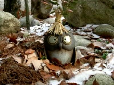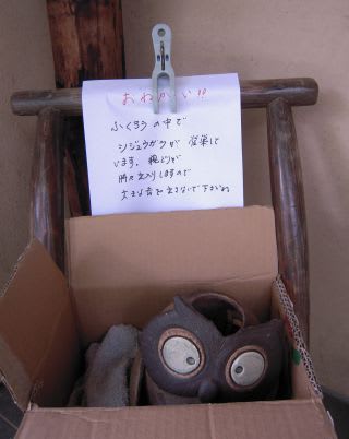 ずいぶん昔、信楽で求めたフクロウの花器兼置物。
