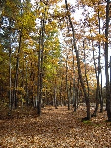 常緑樹のソヨゴ、紅葉樹はミズナラ