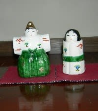 男雛の高さ11センチ 幅7センチ 奥行き4センチと小ぶりだが素朴な色づかい