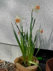 写真右:1鉢400円ながら大盛況の水仙。美しさはお金では計れません