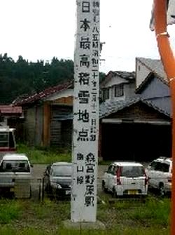 JR飯山線森野宮原。積雪7m185センチ(標柱で高さを体感できる)昭和20年2月12日記録。