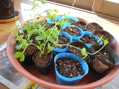遅霜予報が続くので、スナップエンドウの苗と、早生枝豆の芽出しを室内で管理している。