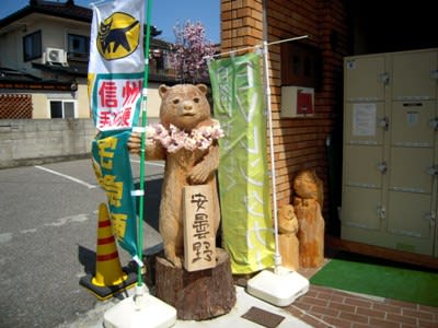 先日訪ねると、入口に木彫りの熊が出迎えてくれた。