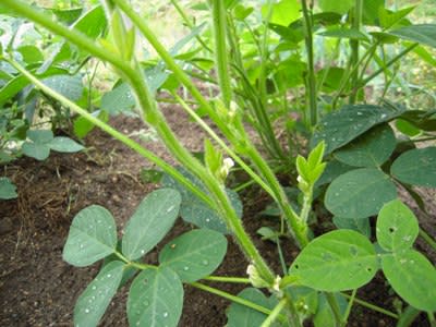 昨年の残り種の早生枝豆もわずかに花がつき出した。