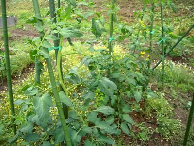 トマト2種3株も1本立ちが出来、実がつき出した。