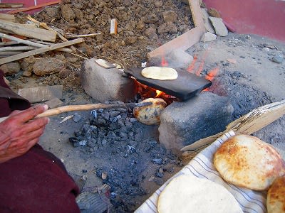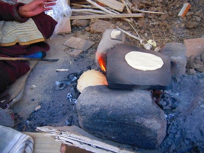 ある朝招集がかかり、「カンビル焼くよ」とおばあ様の手作りパン焼きを見学。