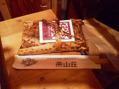 経木につつまれている。冷凍戻しだろうが、山菜おこわおにぎりはなかなかに美味しかった。