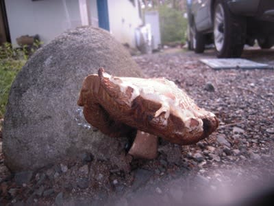 駐車スペースの片隅に生えていたキノコが、直径20センチほどに成長していた。