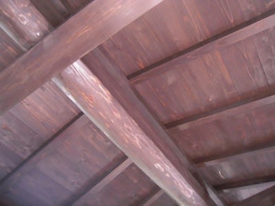 天井には太い棟木。材はサワラですって。