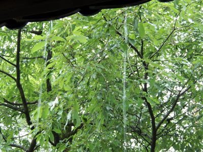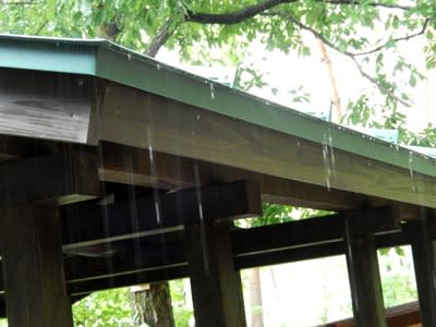 時折でなく、よくよく降る雨に『雨とい』のない我が家は、母屋と東屋の雨だれ対策が必要でして・・・。