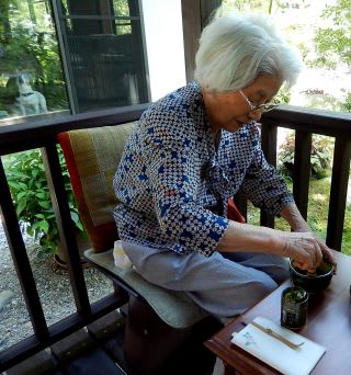 取り急ぎ、東屋で老母の野点が執り行われた。
