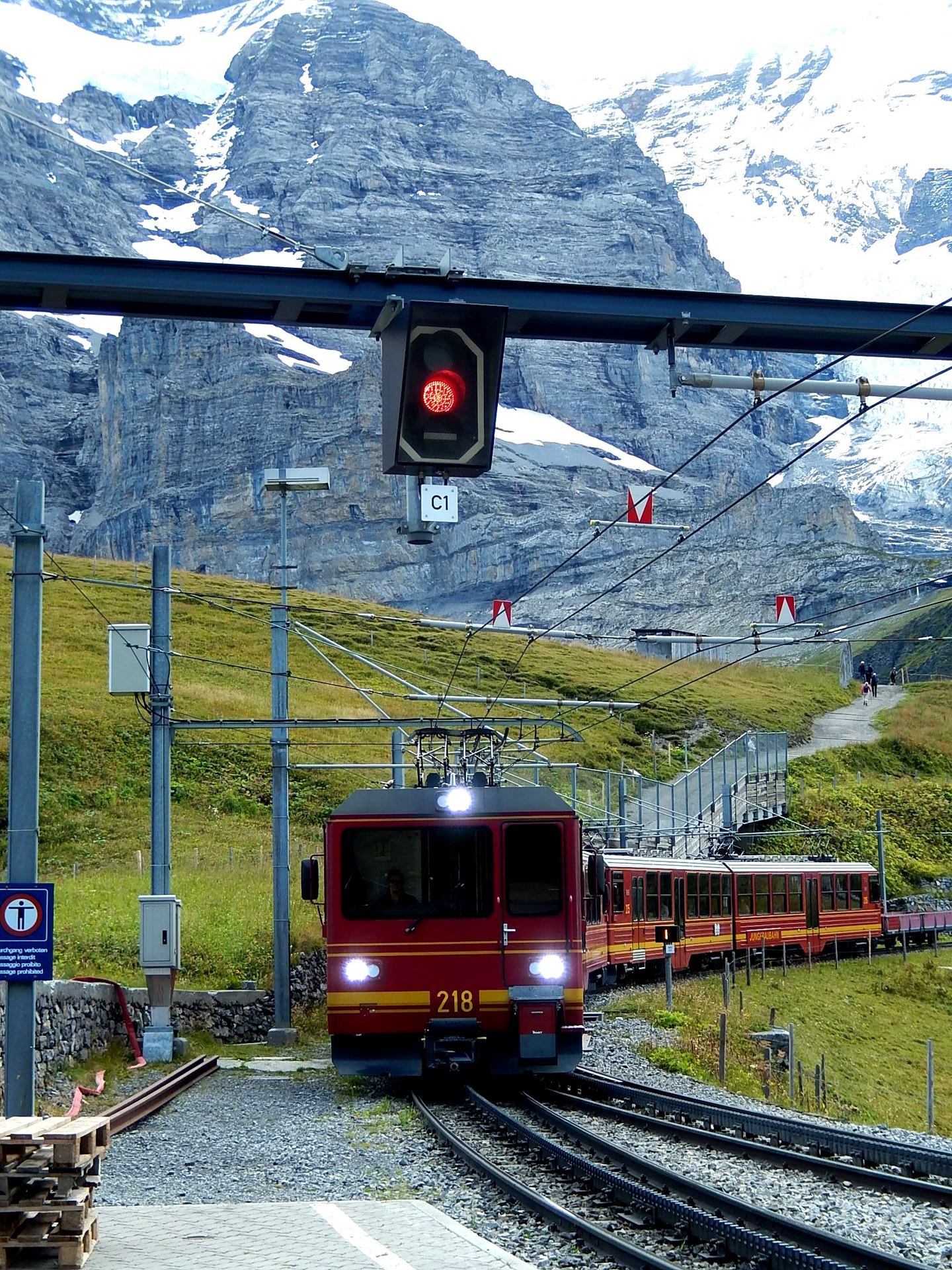 ここから下りトレッキングでユングフラウ鉄道の出発点クライネシャイデック(2061m)へ向かいます