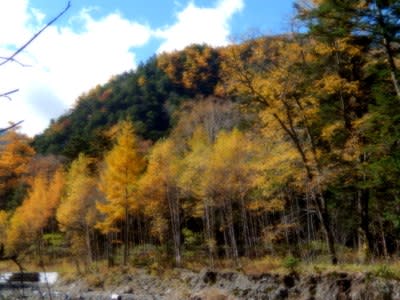 カラマツの黄葉が上高地の秋の象徴のようです。