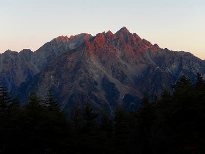 徒歩1分の展望台へ移動し明神穂高方面の朝焼けを待つ