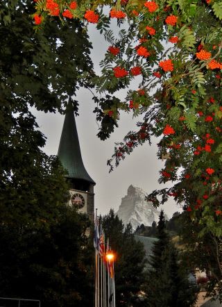 早朝の散歩道から・・・遠くに映るマッターホルン。