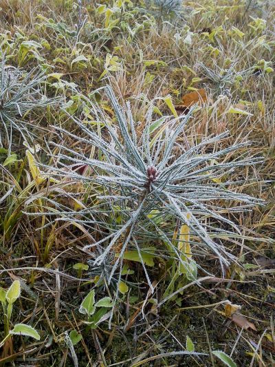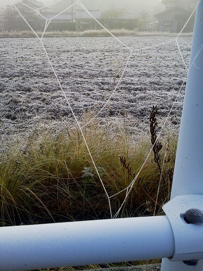 霜がまとわりついて、まるで凧糸で編んでいるよう。